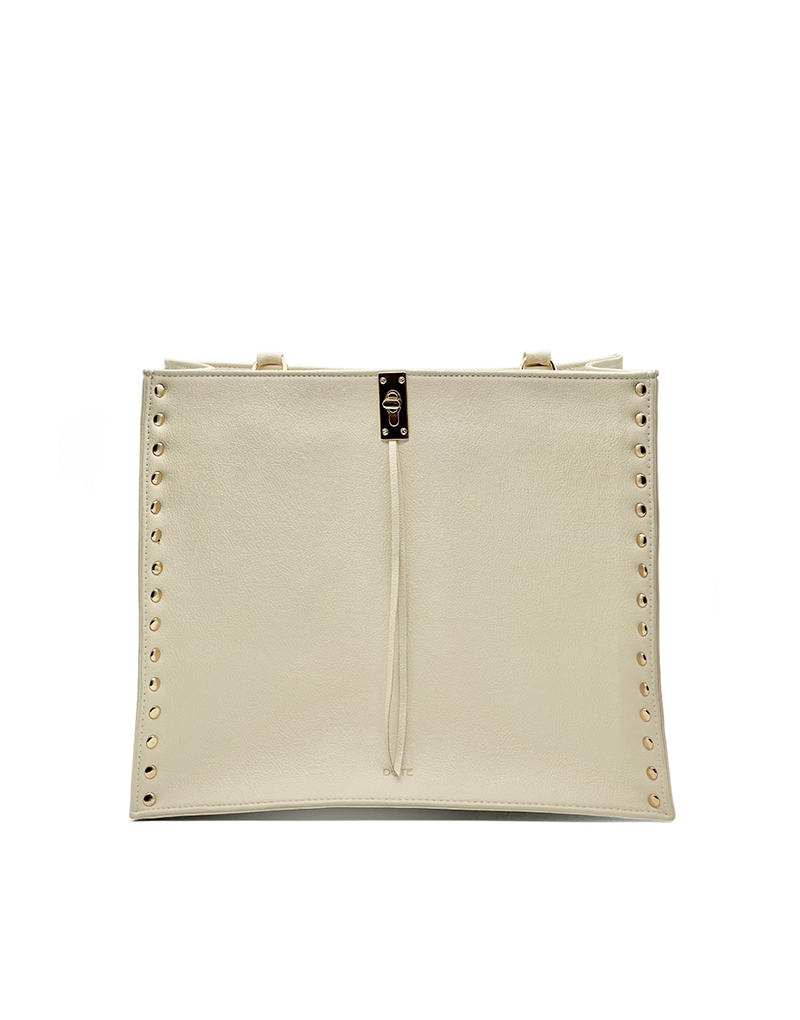 Adorned with gold-tone stud detailing, The Noir Luxe White adds a bold yet refined edge to any outfit, making it your go-to accessory for work, events, or casual outings. Its spacious interior ensures you can carry all your essentials effortlessly while staying impeccably chic.